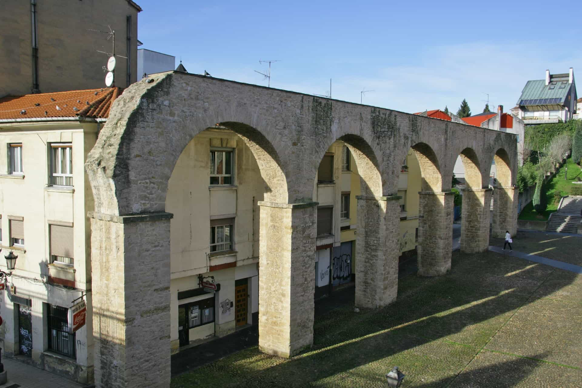 De esta emblemática construcción ovetense, realizada para paliar los problemas de sequía crónica de la ciudad, sólo quedan en pie cinco de los cuarenta y dos arcos o pilares —nombre éste de Pilares utilizado por el gran escritor local Ramón Pérez de Ayala para dar nombre a Oviedo en sus novelas— que formaban parte de la traída de agua desde Fitoria y Boo y discurrían, alineadamente, desde el Colegio de Auseva hasta la actual calle Cervantes, donde estaba el último arco. Luego, la traída surcaba el Campo de San Francisco y la actual zona del Rosal, finalizando en el caño de la Capitana en la Puerta Nueva, sita en la esquina de las calles de la Magdalena y Marqués de Gastañaga.