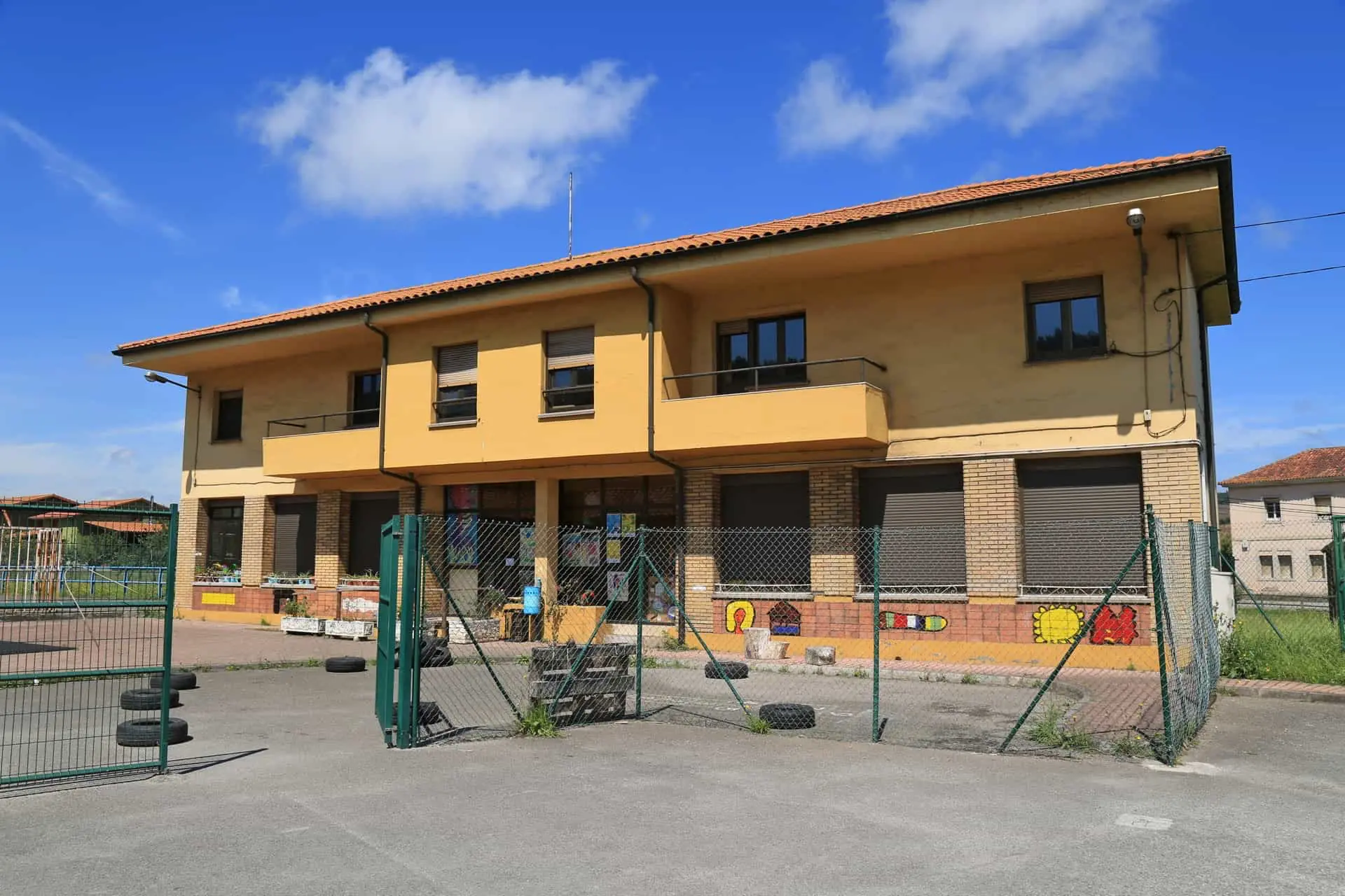 Conjuntos etnográficos | Carreño | Ubicación: fachada del colegio San Félix. Año: 2000. Medidas: 2 x 2,50 metros. La obra: «El tema del mural son los diferentes animales que han poblado mi infancia y con los cuales he crecido y convivido ayudándome en mi evolución, la C u Ola gris que se percibe al princ