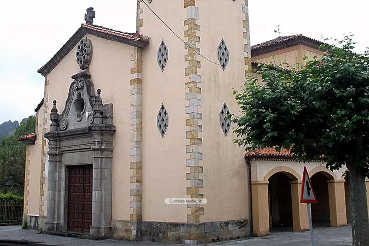 Capillas | Piloña | Edificio de planta de cruz latina cubierta con bóveda de cañón, cabecera cuadrada y sacristía anexa de mampostería. Lo más sobresaliente de la fachada son sus dos torres-campanario, de cuatro huecos y rematadas con cupulillas que culminan en pináculos. En el lado s